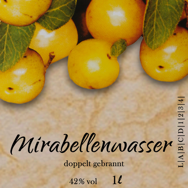 Vollmundiger Mirabellenbrand mit 42% vol. Der Mirabellenbrand wird aus tiefgelben, Vollreifen Mirabellen doppelt gebrannt. Nach der Lagerung entsteht so ein echtes Geschmackserlebnis.