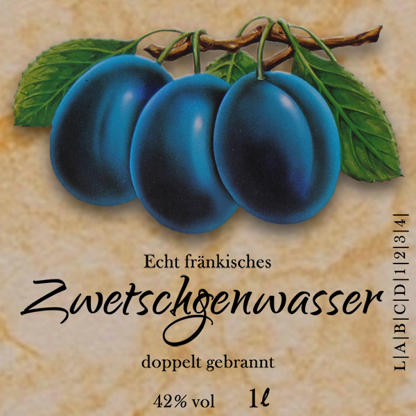 "Fränkisches Zwetschgenwasser“ mit 42 % vol. wird ausschließlich in Franken aus fränkischen Zwetschgen hergestellt und gilt damit als geschützter Begriff.